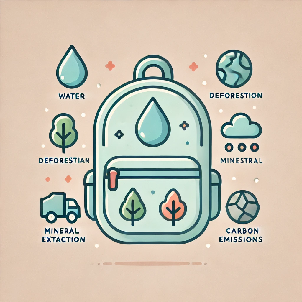 생태배낭은 제품의 수명 주기 전반에 걸쳐 투입된 자원량(예: 물, 광물, 에너지 등)을 추적한다. 이는 원료 채취, 제조, 운송, 사용, 폐기 과정을 포함한다. - 숨어 있는 자원 소비